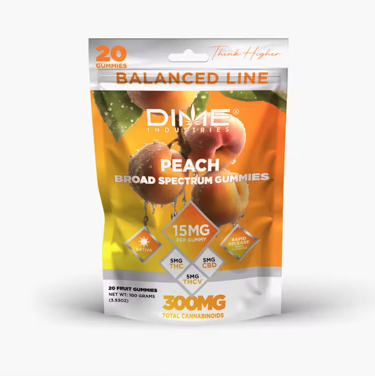 Harness the power of nature with our Peach gummies. Perfectly dosed with the perfect blend of THC, CBD and THCV. Recharge our senses with 15mg of cannabinoids per piece, designed to uplift and energize your day. Balanced Line gummies are gluten-free, vegan and rapid release.