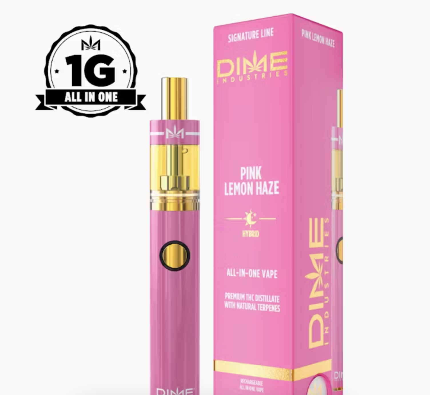 The legend returns! Back by popular demand, Pink Lemon Haze is the refreshing cross of Pink Kush and Super Lemon Haze. A blast of sweet lemonade with notes of raspberry, strawberry and vanilla. A balanced hybrid that energizes your mind while relaxing everything else. Powered by Dime Industries hardware, this device offers 3 heat custom settings (4.2v to 3.2v), pre-heat function, easy air flow, and is USB-C rechargeable. Give your buds a delicious treat backed by the industry's most powerful battery!