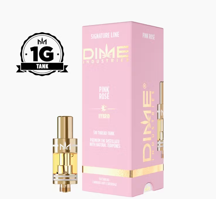 Pink Rosé is a sophisticated indica dominant hybrid artfully crafted by the perfect blend of "ZKL" and "Pink Champagne". Every draw of Pink Rosé captures the delicate nuances of a bubbly grape undertone, harmoniously dancing with vibrant overtones of exotic tropical fruits. The experience is reminiscent of savoring a fine glass of Pink Rosé wine on a tranquil evening. Take your vape experience to a whole new level and keep coming back for that 'one last sip' you just can't resist! Enjoy the vibe! For the best experience we highly recommend pairing your tank with a Dime Industries battery, but our newly redesigned tanks are also compatible with other button and draw-activated 510 thread batteries.