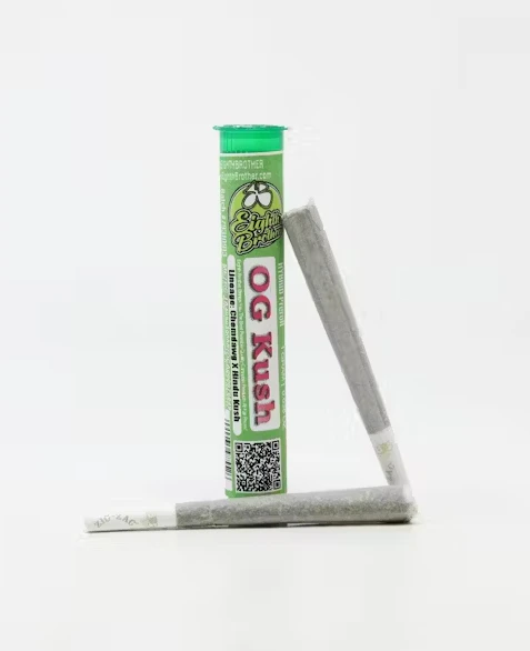 OG Kush Preroll is a blend of shake and flower. Delivers a mind and body high. Linage: Chemdawg x Hindu Kush. Has a woody piney aroma.