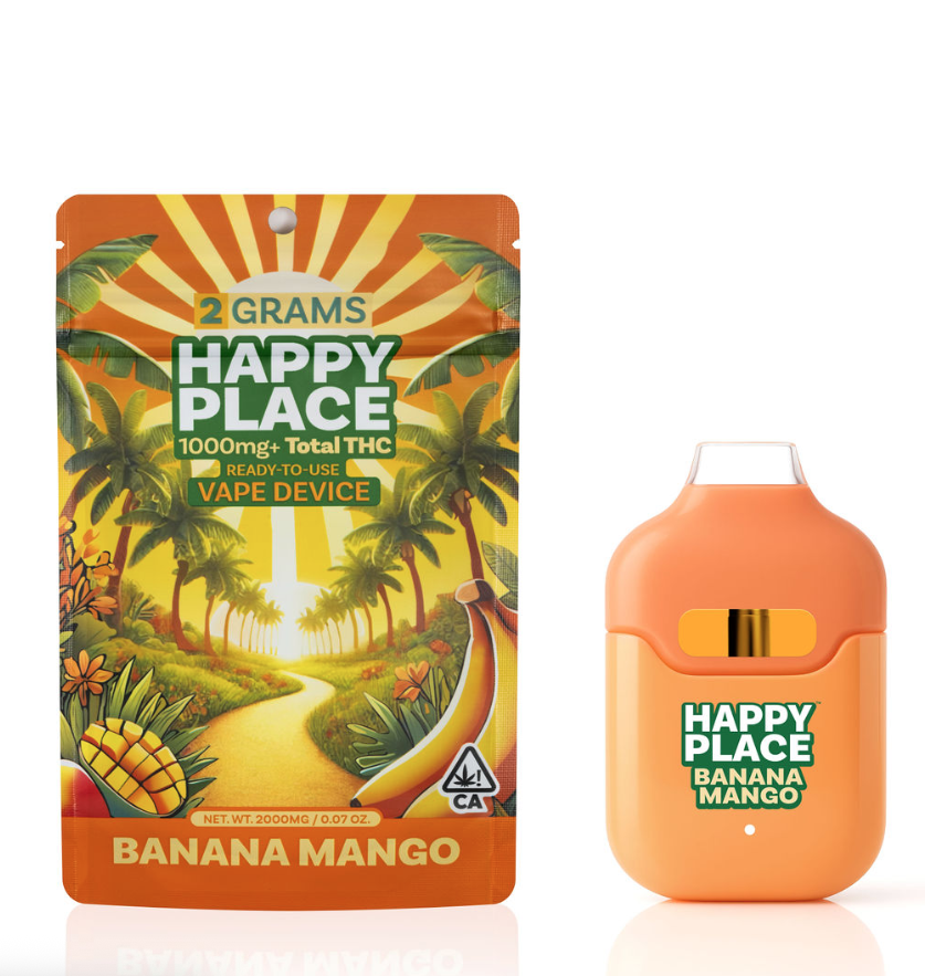 Find Your Happy Place Happy Place is California's first 2-gram All-In-One vape, delivering more puffs, the highest potency, and the most oil available – all at an unbeatable price per gram. Our high-quality oil is crafted with premium HTE Diamond Sauce, rich in THC, minor cannabinoids, cannabis terpenes, flavonoids, and natural terpenes for an exotic flavor profile you won’t find anywhere else. No distillate – just pure, powerful effects that elevate your experience. Taste the difference, feel the quality, and find your happy place with every hit.