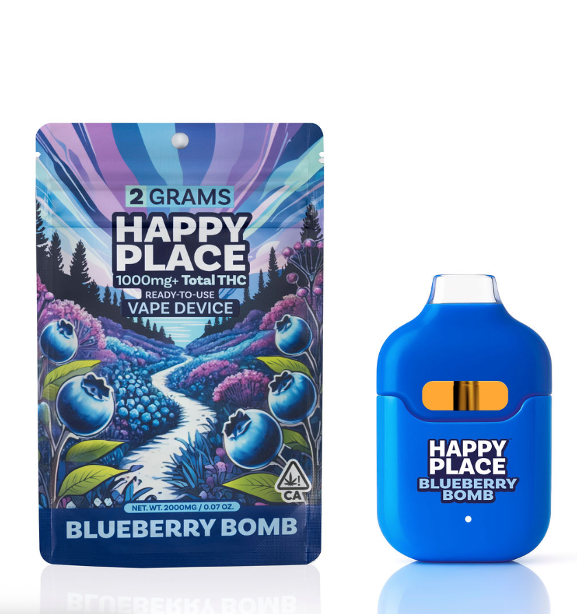 Find Your Happy Place Happy Place is California's first 2-gram All-In-One vape, delivering more puffs, the highest potency, and the most oil available – all at an unbeatable price per gram. Our high-quality oil is crafted with premium HTE Diamond Sauce, rich in THC, minor cannabinoids, cannabis terpenes, flavonoids, and natural terpenes for an exotic flavor profile you won’t find anywhere else. No distillate – just pure, powerful effects that elevate your experience. Taste the difference, feel the quality, and find your happy place with every hit.