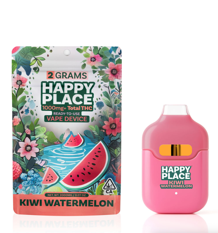 Find Your Happy Place Happy Place is California's first 2-gram All-In-One vape, delivering more puffs, the highest potency, and the most oil available – all at an unbeatable price per gram. Our high-quality oil is crafted with premium HTE Diamond Sauce, rich in THC, minor cannabinoids, cannabis terpenes, flavonoids, and natural terpenes for an exotic flavor profile you won’t find anywhere else. No distillate – just pure, powerful effects that elevate your experience. Taste the difference, feel the quality, and find your happy place with every hit.