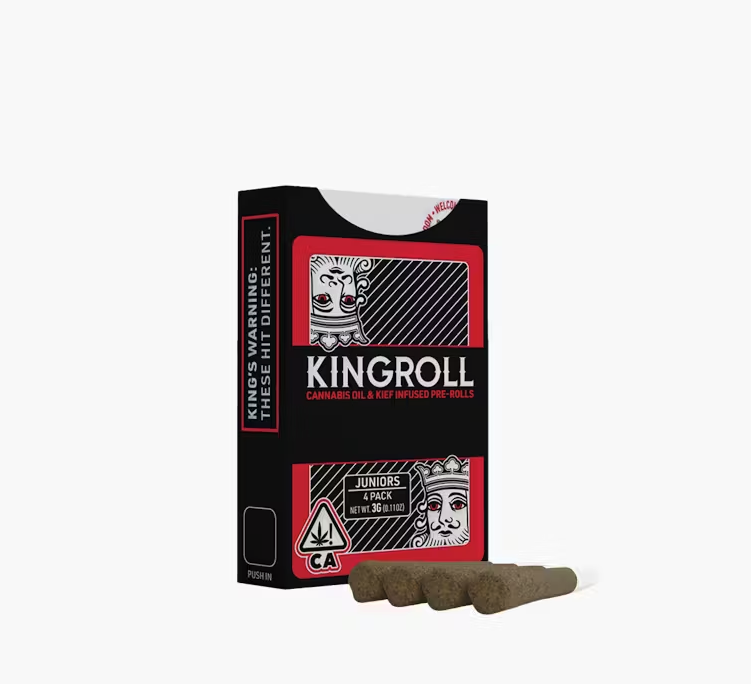 From the legendary brand Kingpen, Kingrolls are premium joints made with only whole nug flower, infused with Kingpen cannabis oil and coated in golden kief. Kingrolls are highly potent, handcrafted, flavorful pre-rolls available in a variety of complimentary flower and oil strain combinations as well as sizes for every kind of sesh.