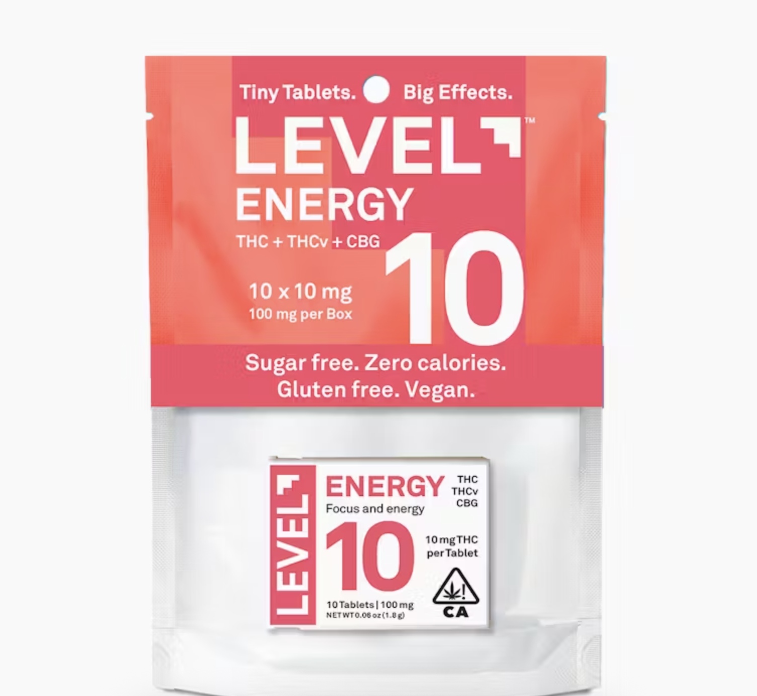 Tired of sugary gummies and messy edibles that leave you feeling sluggish? LEVEL 10 Energy tablets are here to revitalize your day. Each tablet combines the power of 10 mg delta-9 THC, 5 mg of THCv, and 3 mg of CBG in a precisely formulated blend designed to deliver clean, focused energy and help you conquer your to-do list. These highly effective, long-lasting tablets are sugar-free, gluten-free, vegan, and contain zero calories. Plus, they’re scored for easy splitting, so you can dial in your perfect dose every time. Simply swallow with liquid.