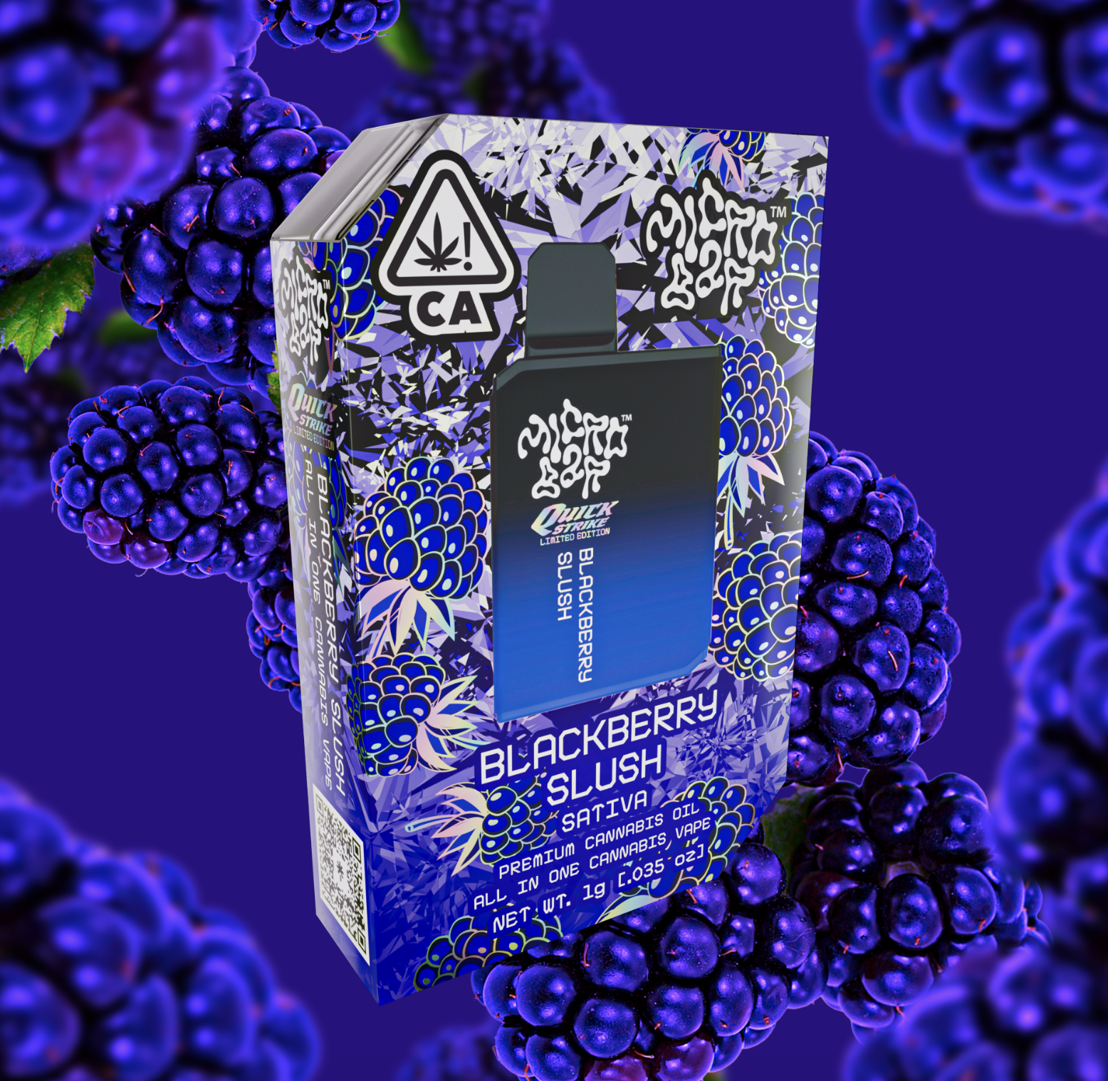 Introducing "Blackberry Slush," a new Quickstrike from Micro Bar that's sure to tantalize your taste buds with its irresistible combination of sweetness and subtle tartness. With every puff, you'll be transported to a world of pure delight, as the luscious taste of ripe blackberries washes over your palate. The initial burst of sweetness is perfectly balanced by a hint of tartness, creating a harmonious symphony of flavors that dance on your tongue.