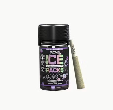 Rove Ice Packs, the world’s first triple-infused preroll. Made with premium-grade flower fully-infused with THCA diamonds and solventless ice hash rosin, they're expertly rolled, then coated with more ice hash. Super smooth and ultra potent, Rove Ice Packs test at over 50% THC. Welcome to the next evolution of prerolls.