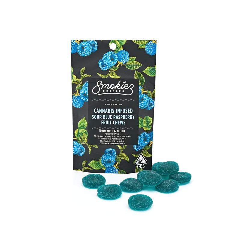 Smokiez™ Sour Blue Raspberry THC Fruit Chews are NOT YOUR AVERAGE GUMMY™ These delicious fruit chews are a tasty and satisfying way for your customers to medicate! They are also Vegan, Gluten Free, Dairy-Free, and contain NO High Fructose Corn Syrup. Each of our mouth watering fruit chews contain 10 mg THC, and made with our high clarity cannabis distillate for great taste. There are 10 pieces per package with 100 mg active THC per package. Smokiez™ Fruit Chews come in 5 delicious flavors and have both sweet and sour flavor profiles that your customers are sure to love!