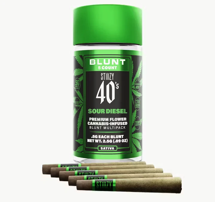 STIIIZY 40's blunts are rolled with 100% tobacco free, kief dusted hemp wraps. We’ve packed each infused blunt with premium, high quality flower so that every inhale is just as good as every exhale. STIIIZY 40's Blunts are reinventing the way you get high by being the introducing unique profile profiles & unmatched potency with live resin infusion. Pass the blunt.
