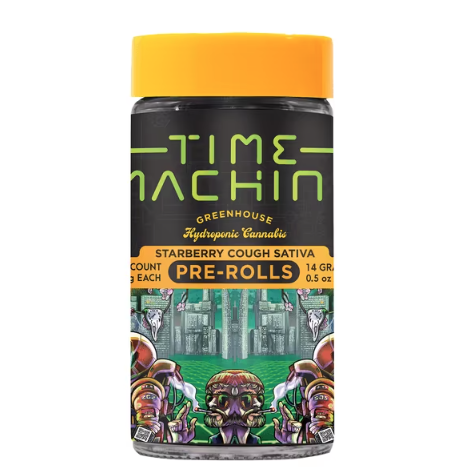 Starberry Cough offers vibrant berry aroma and an electrifying kick for a creative adventure. Time Machine's Fuel-Rods offer premium, consistent pre-rolls packed with top greenhouse hydroponic flower for a timeless cannabis journey.
